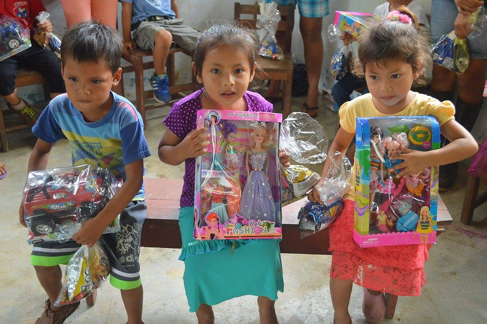 Notre projet était d'organiser une sorte de Noël pour les enfants des communautés de la jungle qui entoure la ville, en apportant des jouets et des sucreries. Ce voyage servait aussi à visiter les villages dans lesquelles ont été construits des réservoirs d'eau financés par le rotary et à faire du tourisme au passage.
